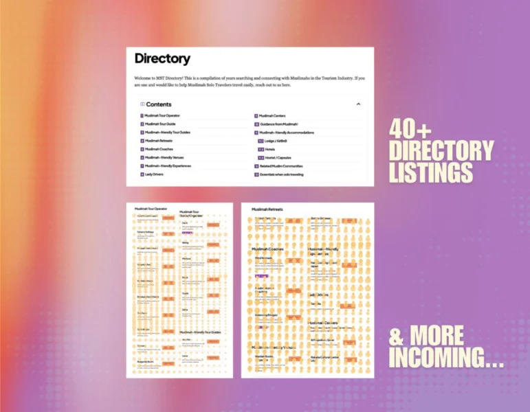 A directory of Muslimah-friendly tour people, services, accommodation, that you can refer to.