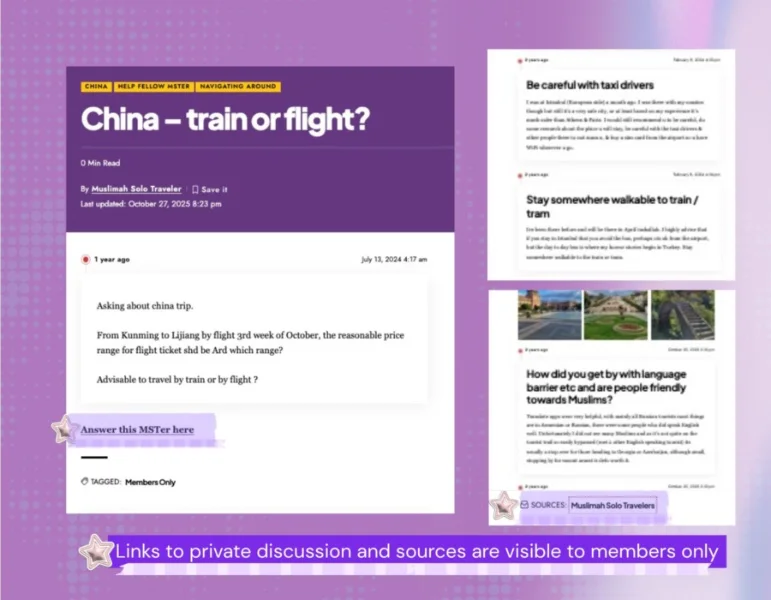 Salam to community conversation archives on the website. As a resource for #MuslimahSoloTravelers, we’re simplifying how you search. Sometimes the same question has been asked time and time again in the community. So to centralize everything, we’re archiving them on the website. Plus, who has time to scroll so much?
